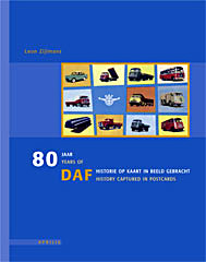 80 jaar DAF op kaart in beeld gebracht 80 years of DAF captured in postcards In tien hoofdstukken wordt de geschiedenis van dit grootste Nederlandse automerk beknopt beschreven. Voor de afbeeldingen, die het belangrijkste bestanddeel van dit volledig in kleur uitgevoerde boek vormen, is vrijwel uitsluitend gebruikgemaakt van origineel fabrieksmateriaal (hoofdzakelijk reclame-prentbriefkaarten, maar ook enkele verkoopbrochures). Er wordt aandacht besteed aan de start als producent van aanhangwagens; vanaf de jaren ‘50 worden vrachtwagens gefabriceerd (met aanvankelijk ook een belangrijk aandeel voor militaire voertuigen) en vanaf 1958 volgt dan als eerste personenauto de DAF 600. Ook bijzondere voertuigen zoals verhuiswagens en bussen komen aan bod. Na het einde van de productie van de personenauto vanwege de overname door Volvo in 1975 gaat alleen de vrachtautofabricage door en na een moeilijke periode en zelfs een faillissement in 1993 is DAF Trucks onder de paraplu van PACCAR momenteel weer een bloeiende fabriek die oprukt in de ranglijst van Europese truckfabrikanten. Ook de deelname aan autosportevenementen zoals rally's, rallycross, Formule 3, Parijs-Dakar en truckracing wordt behandeld. Deze tweetalige uitgave (Nederlands/Engels) bevat meer dan 200 prentbriefkaarten en ook de bijzonderheden van deze uitgegeven kaarten worden beschreven. Het is een boek dat zowel de liefhebbers van het merk DAF als verzamelaars van prentbriefkaarten zal aanspreken. De tekeningen op het omslag zijn van Charles Burki. |