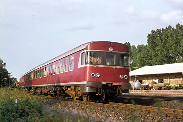 Aschendorf, 18 augustus 1974. Treinstel 624/924 als trein naar Rheine. Let op de deur in de voorkant van de machinistencabine. Deze is later verwijderd. |