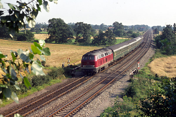 Aschendorf, 18 augustus 1974. Een 042 met een sneltrein naar Rheine. |