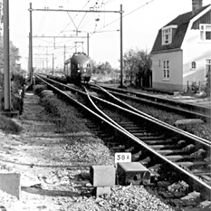 Beveiliging: NX of AR?Sinds de modernisering van de beveiliging in 1959 kwam ook in Baarn het klassieke armseinstelsel te vervallen. Na de invoering van NX in 1950 (’s Hertogenbosch als eerste emplacement) is men in 1956 begonnen met het uitrusten van een 27 tal kleinere stations met stationsrelaisbeveiliging, het zgn. NX-systeem (eNtrance, eXit), waarbij met begin- en eindknoppen op een tableau de totale rijweg vastgelegd kon worden. Hilversum kreeg op 2 maart 1959 NX en Naarden-Bussum per 2 november 1959. NX was voor de kleinere emplacementen te duur en te complex. NS vond de oplossing in het zgn. AR-systeem; de afkorting staat voor All Relayed. Het toestel lijkt op het NX-tableau, de bediening en de grootte van het toestel is echter anders. AR-tableaux van voor 1958 waren zwart van kleur, na 1958 groen. Vele kleinere emplacementen kregen het AR-systeem. De laatste twee tableaux waren Beverwijk en Santpoort Noord die op 20 december 2000 buiten dienst zijn gegaan, waarmee de invoering van het computergestuurde VPT-systeem in Noord Holland voltooid werd. Baarn behield zijn AR tot de invoering van VPT op de Gooilijn op 16 december 1996.
