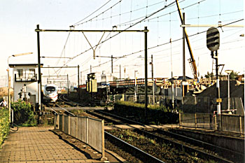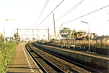 Bij deze tekst vindt u een aantal foto’s van de oude situatie en de laatste dagen voor de grote ombouw. Op donderdag 12 september 2002 werd de gelijkvloerse overgang in de Stationsweg (ahob km 22.7) bij het station om 10.00 uur gesloten, waarna direct werd begonnen met het inschuiven van een voorgebouwd brugdek van het hoger gelegen oostelijke spoortracé. Deze ahob was de laatste jaren zo druk geworden (als verbinding naar de snelweg A2), dat filevorming (met zwaar vrachtverkeer) een gevaarlijke situatie dreigde te worden. Op vrijdagmiddag 13 september 2002 reden, na de avondspits, de laatste treinen over de laag gelegen sporen. De grote buitendienststelling ving aan om 20.00 uur en zou tot maandag 16 september aanvang dienst duren. Na het weekend werd begonnen met het opbreken van de oude spoorbaan, slopen van de zijperrons en ophogen van de gronden ten behoeve van de twee westelijke sporen. Fly-overInmiddels zijn ook deze twee westelijke, hoog gelegen sporen aangelegd en is een fly-over gebouwd in het spoor Breukelen–Maarssen, dat de twee sporen van/naar Harmelen nu ongelijkvloers kruist. De binnenste sporen zijn bedoeld voor de stoptreinen die kunnen halteren langs het nieuwe eilandperron, de buitenste twee sporen zijn sporen voor doorgaand verkeer. De fly-over kwam op 27 september 2004 met het 83e wijzigingsblad op Utrecht Procesleiding in dienst (BVS-wijziging). In Breukelen ontstaat nu in beide richting een passeer-/inhaal mogelijkheid ter vervanging van het vervallen 3e spoor in Nieuwersluis, waar eerst een tweesporig viaduct voor de (nieuwe) westelijke sporen werd gebouwd en later een tweesporig viaduct voor de twee oostelijke sporen in het oude tracé. Dit laatste (tweeling)viaduct over de Nieuwe Wetering bevond zich in november 2005 in de afbouwfase. Ook het stationsplein en de perrontoegangen zijn inmiddels definitief gereed. De Kerkevaart heeft zijn waterloopkundige functie behouden en stroomt nu onder het station door en is daar een visueel onderdeel van geworden. De luchtfoto verderop toont de situatie op 8 november 2005. Edward Bary |
