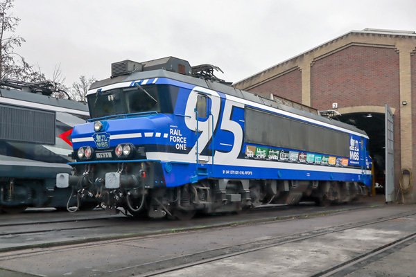 Rotterdam, 12 december 2025. Bij de SSN werd loc 1931 gepresenteerd. Dit is RFO-loc 1831, ooit NS 1631, die een bijzondere bestickering heeft gekregen in het kader van het 95-jarige jubileum van de NVBS in 2026. Het locnummer 1931 heeft betrekking op het oprichtingsjaar van de NVBS. De officiële eerste rit was de oliebollenrit van de NVBS op 3 januari 2026. Foto: Sjors van Dongen (NVBS). |