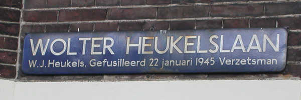 Wolter Heukels was een Utrechtse verzetsstrijder. Na de oorlog is deze straat naar hem vernoemd. Voor die tijd was het de Mengelberglaan. Willem Mengelberg was een Nederlandse dirigent die geen grote afkeer had van de Duitse bezetter, om het zo maar te zeggen, vandaar dat zijn naam na de oorlog niet meer op straatnaambordjes mocht staan. Dat de Mengelberglaan in Utrecht naar een heel andere Mengelberg was vernoemd deed niet ter zake.