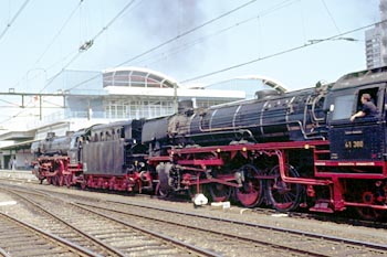 Utrecht, 25 juni 1989. Loc 41 105 van de SSN loopt binnen met zustermachine 41 360. |