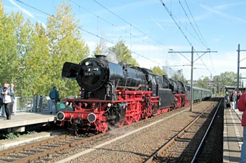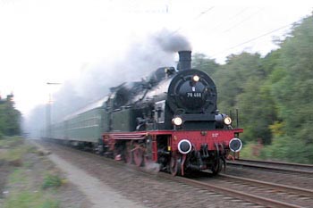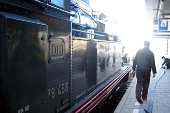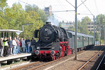 Driebergen, 11 oktober 2003. Loc 78 468 op weg van Duitsland naar Rotterdam. Het bezoek van deze loc was een initiatief van de Nostalgie Expresse Spoorweg Maatschappij (NESM), die dit weekend twee ritten van Duitsland naar Rotterdam v.v. verzorgde. Deze Pruisische dame was een welkome afwisseling tussen de gebruikelijke Neubau- en Rekoloks. |