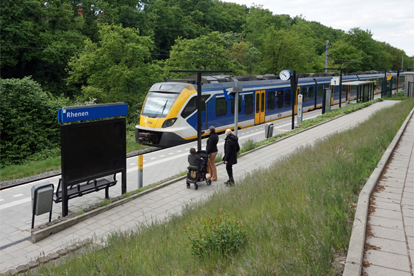 Rhenen, 5 mei 2025. Langs het perron sprinters uit Breukelen (via Utrecht en Bunnik). Geen vlag zoals op 5 mei 2004, maar wel een gedenkplaat voor drie tijdens de oorlog omgekomen NS'ers.