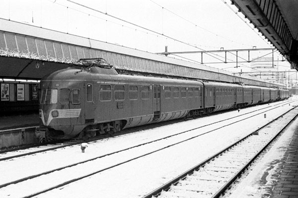 Rotterdam CS, 27 december 1968. Vijfwagenstellen mat.'40 807 (A-zijde) en 802 (bagagezijde) |