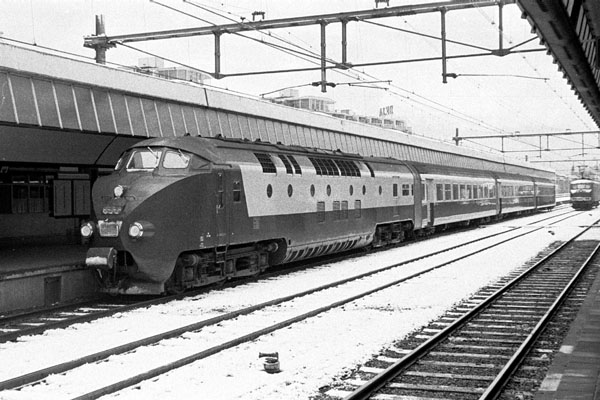 Rotterdam CS, 27 december 1968. TEE-treinstel 1003 op weg naar Brussel. |
