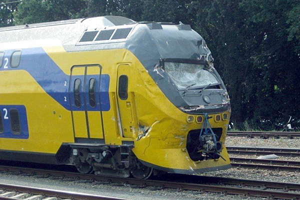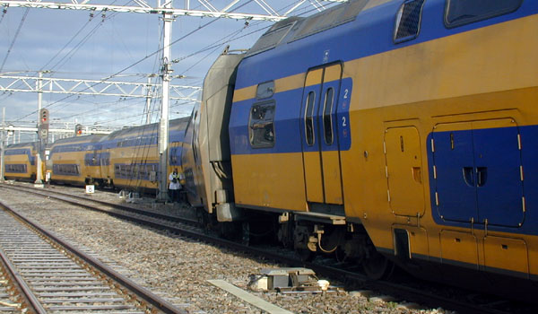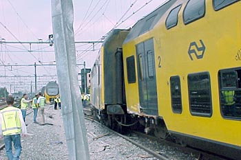 Amersfoort, 26 juni 2002. Ter hoogte van Amersfoort NCS zijn twee treinen met elkaar in aanraking gekomen. Foto's Johann van Dijk (met oranje zonnebril).