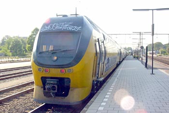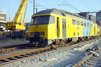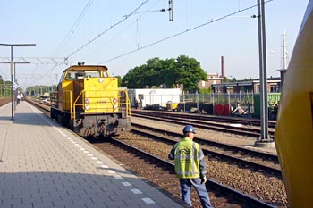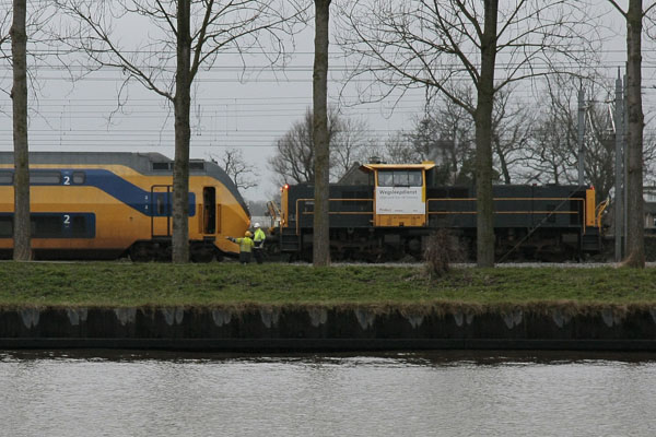Op 20 januari 2004 maakte een bezoeker van mijn site deze foto's van een probleempje op de Watergraafsmeer. De loc is 1778, de Sprinter is 2882. |