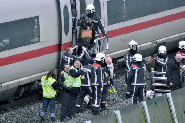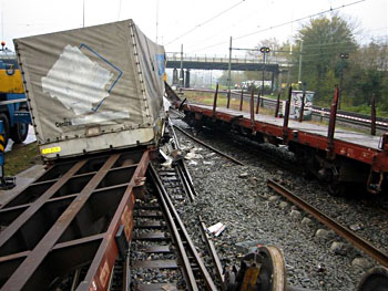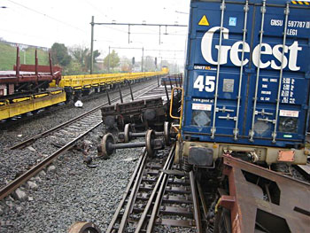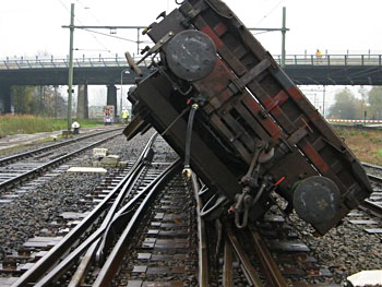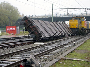 Op 11 januari 2011 schampte een ICE-stel op weg naar Duitsland de achterste wagen van een goederentrein die zojuist de afslag naar de Betuweroute had genomen. De goederentrein was leeg, vandaar dat de brandweer direct met negen wagens uittrok om te kijken of er geen gevaarlijke stoffen lekten. Het is allemaal goed afgelopen doordat de ICE niet zo snel reed. Zie ook dit filmpje. |