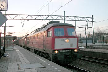 Tijdens het wachten op de trein. Woerden, 6 januari 2005. Loc 232 904 en een collega in het laatste avondlicht. Tweede foto: Bilthoven, 7 januari 2005. Loc 1609 in het eerste ochtendlicht. |