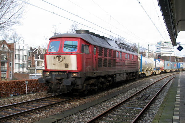 Rotterdam Centraal, 1 februari 2005. Loc 232 908 met een containertrein naar Duitsland. |
