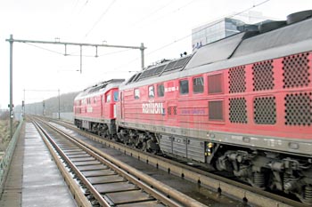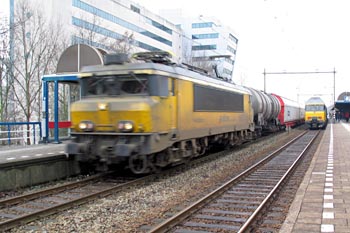 Rotterdam Centraal, 22 februari 2005. Ik had me net in het pluche genesteld van de intercity naar Utrecht, toen ACTS-locs 1252 en 6703 naast mijn raam kwamen staan. Net genoeg tijd om twee plaatjes te maken. |
