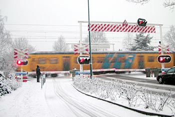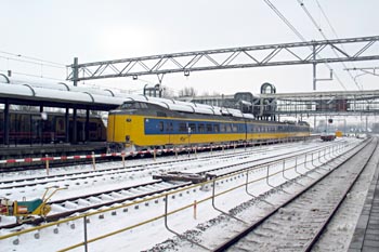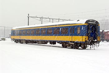 Ook Dennis Revier was op 2 maart 2005 in de sneeuw actief. Plan-V 883 en Plan-T 520 bij binnenkomst van Nieuw-Vennep. Een ICR-rijtuig op het rangeerterrein van de Westhaven van Amsterdam. In Nieuw-Vennep een Beneluxtrein op weg naar Amsterdam en tot een foto voor mijn collectie billboards. |