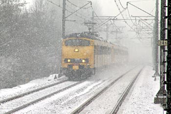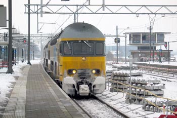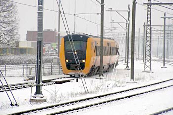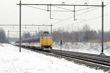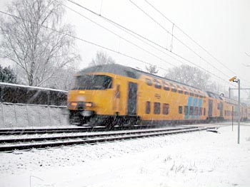 Hartje maartse winter 2005: Koploper rijdt langs Assel (in de buurt van Apeldoorn). Op 4 maart 2005 om 15:05 uur gefotografeerd door Jan Jeroen van Put jr. uit Apeldoorn. Hieronder twee sneeuwfoto's van Hugo Stulp. |