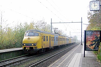 Utrecht, 14 juni 2005. Sinds vandaag kun je op dit station draadloos internetten, hoewel ik aan de demonstratiecomputers nog wel allerlei draden zag zitten. Utrecht is ook een station waar je zo snel mogelijk weer vandaan wilt. Ik in elk geval wel, want ik moest naar een Belangrijke Vergadering in Rotterdam. Ik had uitgerekend dat ik bij Gouda een trein van de SSN zou kunnen ontmoeten, die op weg was naar de STAR in Groningen. Ik zat in een Plan T, een van de weinige materieeltypen waarvan de raampjes nog goed open kunnen. Bij veel treinen kunnen de ramen helemaal niet meer open. Of ze kunnen een klein stukje open, zodat je moet kiezen: of je hoofd naar buiten, of je camera. Enfin, qua foto zou het waarschijnlijk toch niks worden, en dat werd het ook niet. Klik hier voor meer foto's van de SSN op bezoek bij de STAR. |