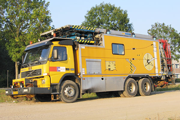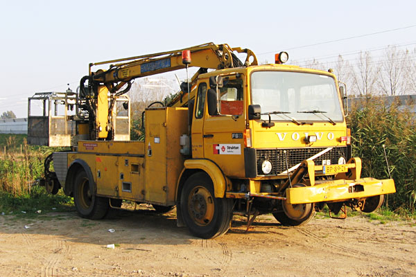 Tiel, 12 oktober 2005. Speciale vrachtwagens voor onderhoud en aanleg bovenleiding. Foto's Eric ten Barge. |