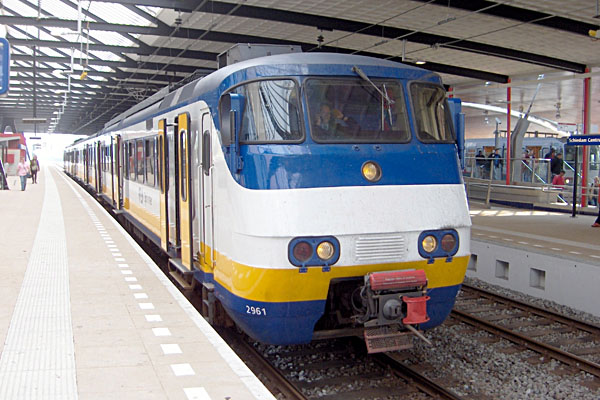 Schiedam, 7 oktober 2005. Sprinter 2961 met opgewekte machinist. Foto Hugo Richter. |