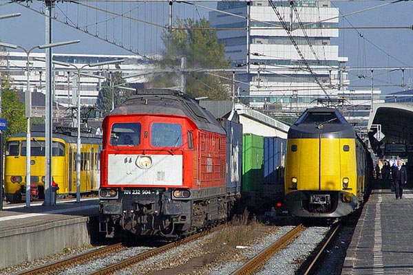 Rotterdam Centraal, 15 oktober 2005. Loc RN 232 904 naast een Koploper. Foto Johannes Hanno v/d Heijden. |