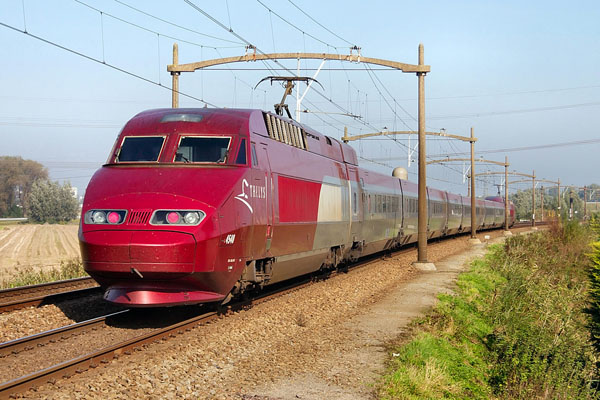 Dordrecht Zuid, 11 oktober 2005. Thalys-treinsel 4540. In de bult op het dak zit de antenne ten behoeve van internet in de trein. Foto Leen Dortwegt. |