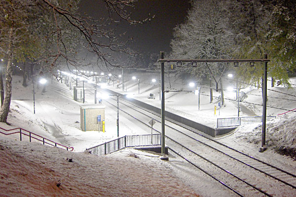 Oosterbeek, 26 november 2005. Tien centimeter sneeuw. Het busverkeer in en rond Arnhem was al opgeheven en de treinen reden mondjesmaat. Foto Hugo Richter. |