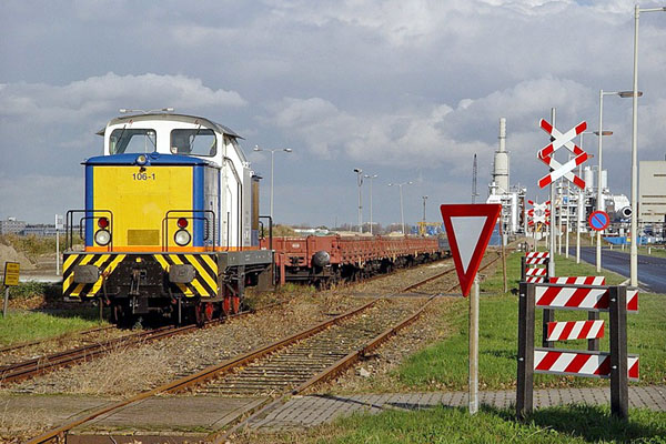 Eindhoven, 13 november 2005. Buffel bij de kuilbank, met rangeerrobot. Foto Rob Quaedvlieg. |