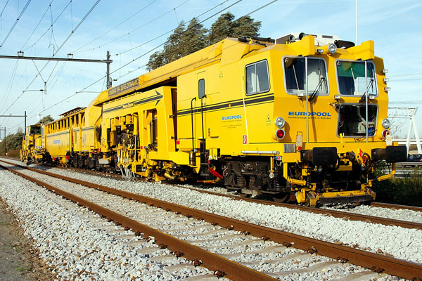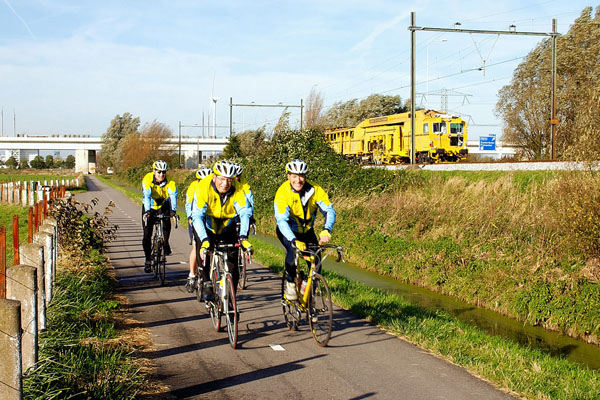 Zoetermeer-Bleiswijk, 6 november 2005. Loc 6518 met zelflossers en Europool Unimat 09-32/4S Dynamic tijdens werkzaamheden. Op de onderste foto komt een peloton zondagsfietsers voorbij. Foto's Leen Dortwegt. |