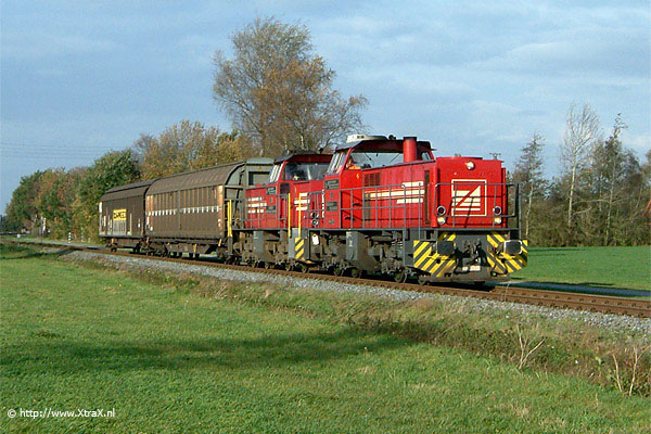 Volzel, 5 november 2005. Bentheimer Eisenbahn-locs D24 en D23 met "Güterzug" GZ215. Foto Fokko van der Laan. |