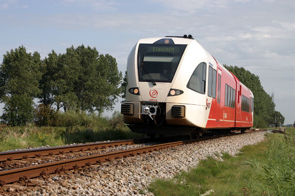 Hindeloopen, 21 augustus 2007. Een Spurt van Arriva is zojuist vertrokken naar Stavoren. Foto Bert Dikker. |