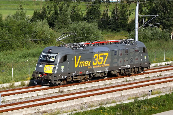 Lage Zwaluwe, 17 augustus 2007. De snelste loc ter wereld, een Taurus van de ÖBB (1216 050), tijdens proefritten op de HSL-Zuid. Aan de stuurknuppel zit Ronald Eisses. Foto Rob van der Woude. |