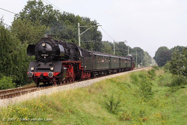 Ede, 25 augustus 2007. VSM-loc 50 3564 (en 23 071) tijdens een rit in het kader van de Heideweek. Foto Fokko van der Laan. |