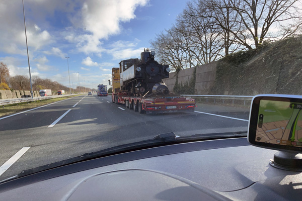 Op de A12, 28 november 2024. Met je auto een stoomloc inhalen, die kans krijg je ook niet dagelijks. Ter hoogte van Maarn werd rond 11.30 uur een loc van de Zillertalbahn gesignaleerd, die na een bezoek aan Wales terugkeerde naar Jenbach. Een toevalstreffer door Peter Nijsen. |
