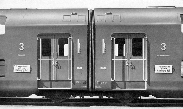 De dubbeldeksstammen bestonden uit twee rijtuigen die in het midden op een gemeenschappelijk jacobsdraaistel rustten. Rijtuigen en locomotieven waren alle voorzien van automatische Scharfenbergkoppelingen. Bovendien hadden ze ook gewone buffers, om in geduwd bedrijf een rustiger loop te hebben. Eventueel kon er ook een 'gewone' locomotief aan de trein worden gekoppeld. |