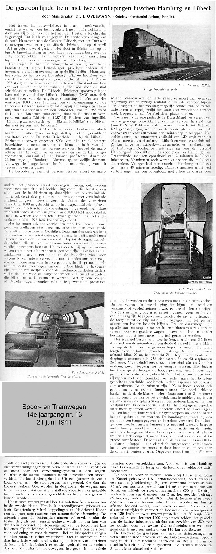 Artikel over de Lübeck-Büchener Eisenbahn in 'Spoor- en Tramwegen', 14e jaargang nr. 13, 21 juni 1941. |