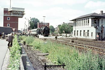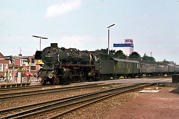 Leer, 17 augustus 1974. Een zevendelige 601 als Intercity "Emsland" van Frankfurt naar Norddeich. |