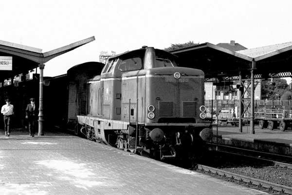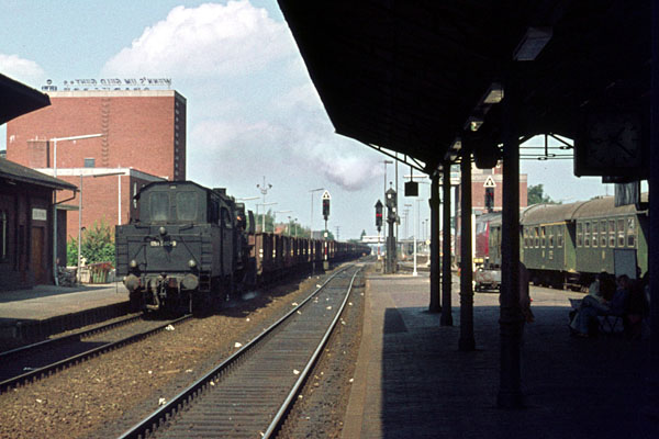 Leer, 13 juli 1971. Loc 094 199 rijdt voorbij. Rechts staat 023 094 te wachten op haar volgende rit. |