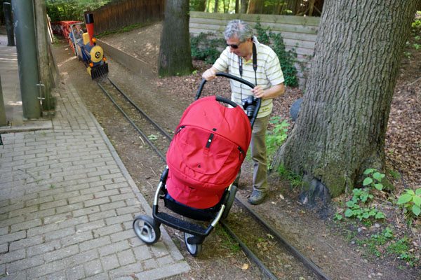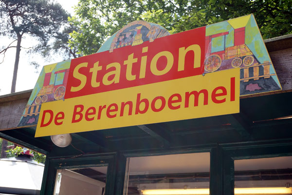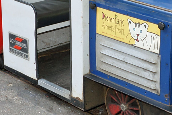 Amersfoort, 18 mei 2014. Dierenpark Amersfoort is in 1948 geopend. Eind jaren zestig werd een spoorlijn door het park aangelegd. Hierop rijdt "De Berenboemel". Het spoor is 34 centimeter breed. De twee locs zijn gebouwd door de firma Schwingel uit Leverkusen. Tussen 1960 en 1985 heeft dit bedrijf diverse Parkeisenbahnen aangelegd. Het tracé in Amersfoort is enkele malen gewijzigd. Een rondrit duurt ongeveer vijf minuten en kost een euro. |