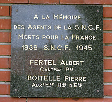 Links gedenksteen op station Le Treport, 23 juli 2006. Rechts: dezelfde dag bij Longeau, een