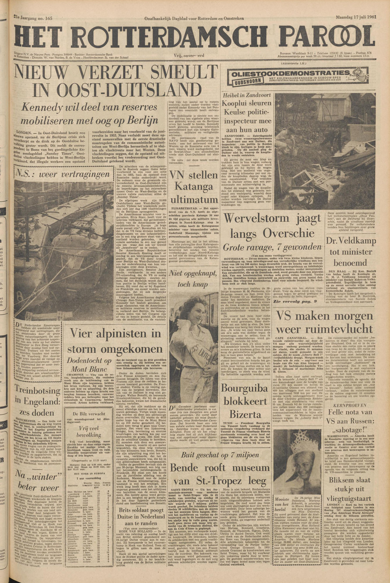 Van de voorpagina van Het Rotterdamsch Parool, 16 juli 1961. Klik voor vergroting.