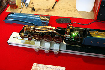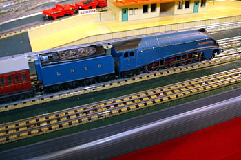 Haarlem, 30 augustus 2008. Modellen van de Dutch Hornby Railway Collectors Association (www.dutchhrca.nl). Op de onderste foto een loc van deze firma. Op de bovenste foto een model uit 1935 van de Burlington Zephyr, op schaal 0 gebouwd door Western Coil & Electric.