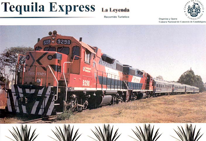 Karin heeft geen trein gezien, maar heeft bij wijze van souvenier wel een foto van de Tequila Express voor me meegenomen. Dit is een luxe trein waarmee toeristen een rondreis door Mexico kunnen maken. |