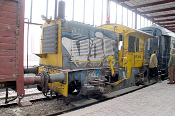 Spoorwegmuseum, 14 oktober 2004. Locomotor 285, tijdens een rondleiding voor leden van de vereniging 'Vrienden van het Spoorwegmuseum'. Het museum was vanwege een grote verbouwing gesloten. |