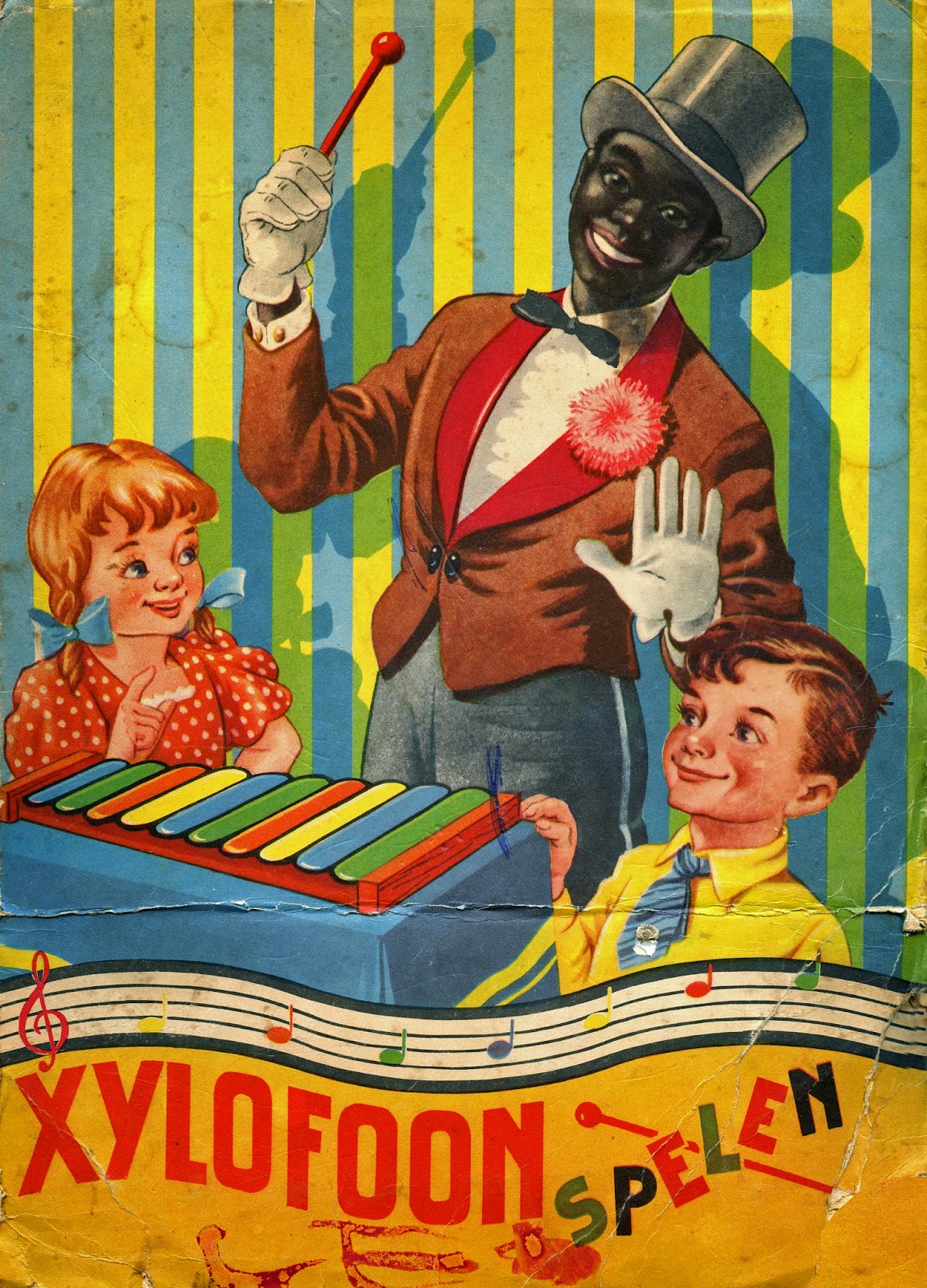 Links mijn eerste muziekboek, circa 1958. Zo'n stereotype kan tegenwoordig natuurlijk niet meer. Vandaar een kleine aanpassing. (Op 5 december 2014 gepubliceerd via mijn weblog.) |