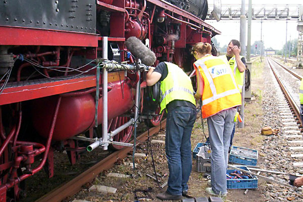 Alleen al met het monteren van de camera en de microfoon is men drie uur bezig geweest. De rijdende trein is in de film slechts enkele seconden te zien. De opnamen zijn gemaakt op het bovenleidingloze gedeelte van de Betuwelijn, in de boog tussen Vork en Elst. Foto's Mitchell Bäcker. |