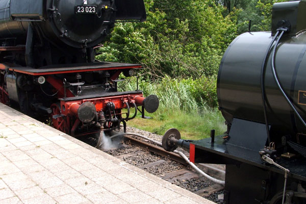 op stoomdruk, maar er is dus geen vuur aan boord. Daarom moet de ketel van tijd tot tijd worden gevuld vanuit een gewone stoomloc of vanuit een