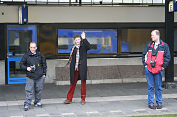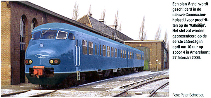 Op de Rails, het maandblad van de NVBS, is een serieus blad. De spoor- en tramweghobby is namelijk een serieuze hobby. Geen grappen alstublieft! Daarom was ik aangenaam verrast door een bericht in het maartnummer van 2006, over een proefrit die op de eerste zaterdag van april zou plaatsvinden. Bij het bericht stond een foto van een blauw geschilderd treinstel plan V, dat op die dag gepresenteerd zou worden in Amersfoort. Met dit soort treinen zou Connexxion op de Valleilijn gaan rijden (de Valleilijn is de nieuwe naam van de Kippenlijn tussen Barneveld en Ede-Wageningen). De grap was leuk bedacht, maar de foto was nogal duidelijk een digitale bewerking van een gewone plan V. Dat kan beter, dacht ik, en dus maakte ik mijn eigen versie van een Valleilijnblauw treinstel. Via een internetforum over spoorwegfotografie werd daar nogal pissig op gereageerd door een (onder pseudoniem opererende) redacteur van Op de Rails. Ik had een idee gejat en ik had een 1-aprilgrap verklapt! Tussen het jatten van ideeën en het commentaar leveren op ideeën van anderen bestaat nogal een verschil. Bovendien had ik die 1-aprilgrap niet verklapt, dat deed deze redacteur nu zelf, door mij te beschuldigen van het verklappen van een 1-aprilgrap. Niet zo intelligent allemaal, maar zoals ik in het begin al schreef is de spoor- en tramweghobby een serieuze hobby, dus mensen met gevoel voor humor en relativeringsvermogen zijn een tamelijk zeldzaam verschijnsel in die kringen. Ik heb beloofd om op 1 april 2006 uit te leggen wat er niet goed is aan de fototrucage in Op de Rails. Dat doe ik hieronder. Ook laat ik mijn eigen fototrucage zien, en de "echte" trucage die door Connexxion via internet is gepubliceerd. Oordeel zelf! Verder ben ik op 1 april in de trein gestapt om te kijken hoeveel fotografen er op deze blauwe belofte waren afgekomen. |