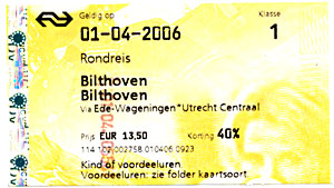 De dienstregeling op 1 april 2006Peter van der Leek, beheerder van www.somda.nl, heeft op een leuke manier meegedaan aan deze 1-aprilgrap, door een zeer serieuze dienstregeling te publiceren, compleet met overbrengingsritten. Omdat ik die ochtend toch met de trein naar Utrecht moest, besloot ik om te reizen via Ede-Wageningen. In Bilthoven stapte ik op trein 7429 naar Amersfoort. Die werd gereden door treinstel 888. Een mooi nummer, maar verder was dit stel gewoon geel. Tussen Amersfoort en Ede-Wageningen heb ik een stuk of tien fotografen gezien, maar uit andere contacten heb ik begrepen dat zich op het station van Amersfoort meer mensen verdekt hadden opgesteld. Helaas heeft de redactie van Op de Rails de grap niet afgemaakt door bijvoorbeeld op het perron een tafeltje met een blauw modeltreinstel neer te zetten. Een grapje is leuk, maar het moet niet ontaarden in humor, zullen ze hebben gedacht. |