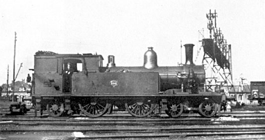 Loc NS 5541 (voorheen HSM 741) op 20 mei 1939 te Almelo. De loc is er een van een grote serie (55 stuks) die rond de eeuwwisseling is gebouwd, onder andere door Werkspoor. Later zijn er enkele vergelijkbare locs met oververhitter gebouwd: de serie 5701-5706. Prentbriefkaart naar een foto van Van Wijck Jurriaanse. |