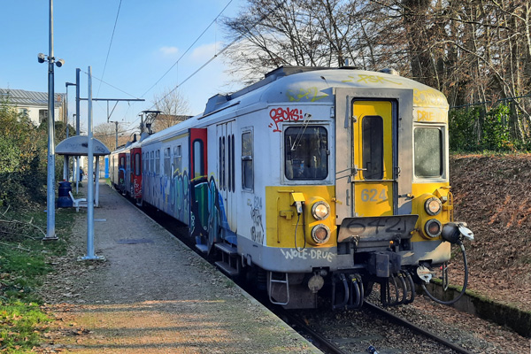 Spa Gèronstere, 2 december 2023. In de loop van 2024 is het afgelopen met deze klassieke Belgische treinstellen. Foto Jan de Kroon. |